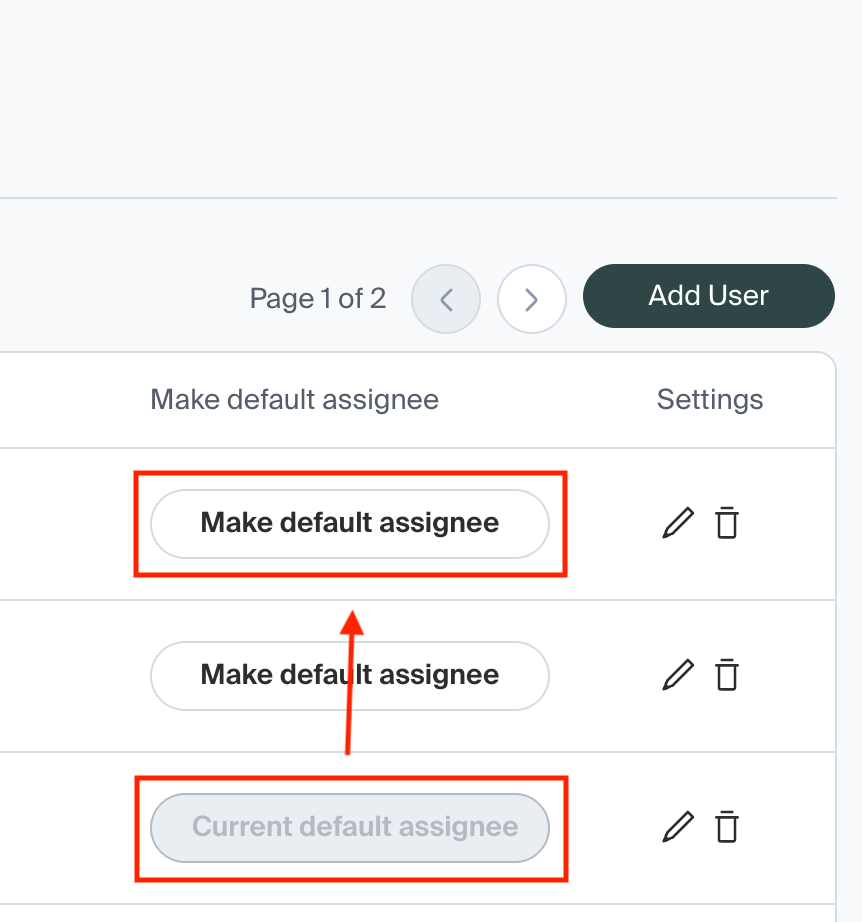 To change the default assignee, log in to the Middesk dashboard (app.middesk.com). Navigate to Settings -> Team. You should now see a list of users, with one user labeled as Current default assignee.